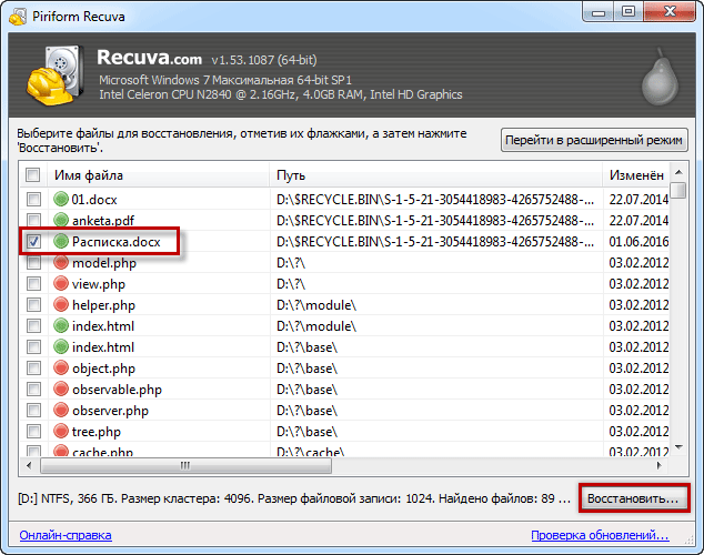 Вірішальній фактор в успіху цієї справи - годину. Чим менше пройшло часу після видалення шляхом очищення кошика, тим більша ймовірність успішного проведення операції відновлення.