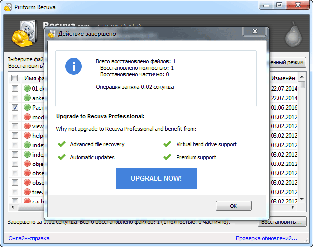 Вуаля! Тепер можна відкрити те місце, в яке Ви відновили файл, і перевірити, чи все з ним в порядку.