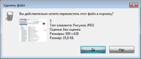 Натиснете «Так» - і комп'ютер зітре файл назавжди, а якщо натиснете на кнопку «Ні», то залишить його недоторканим лежати в «Кошику».