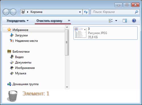 Файл відновлюється на те місце, з якого він був поміщений в корзину. Якщо ж натиснути на кнопку «Очистити кошик», то файл зникне з кошика назавжди. Якщо через деякий час ви захочете відновити такий файл, то доведеться сподіватися на удачу і виконати деякі дії.