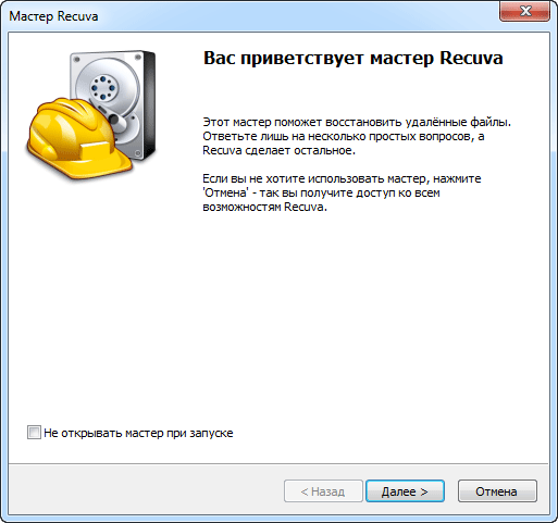 При запуску нам відразу пропонують відновити файли. Натискаємо «Далі».