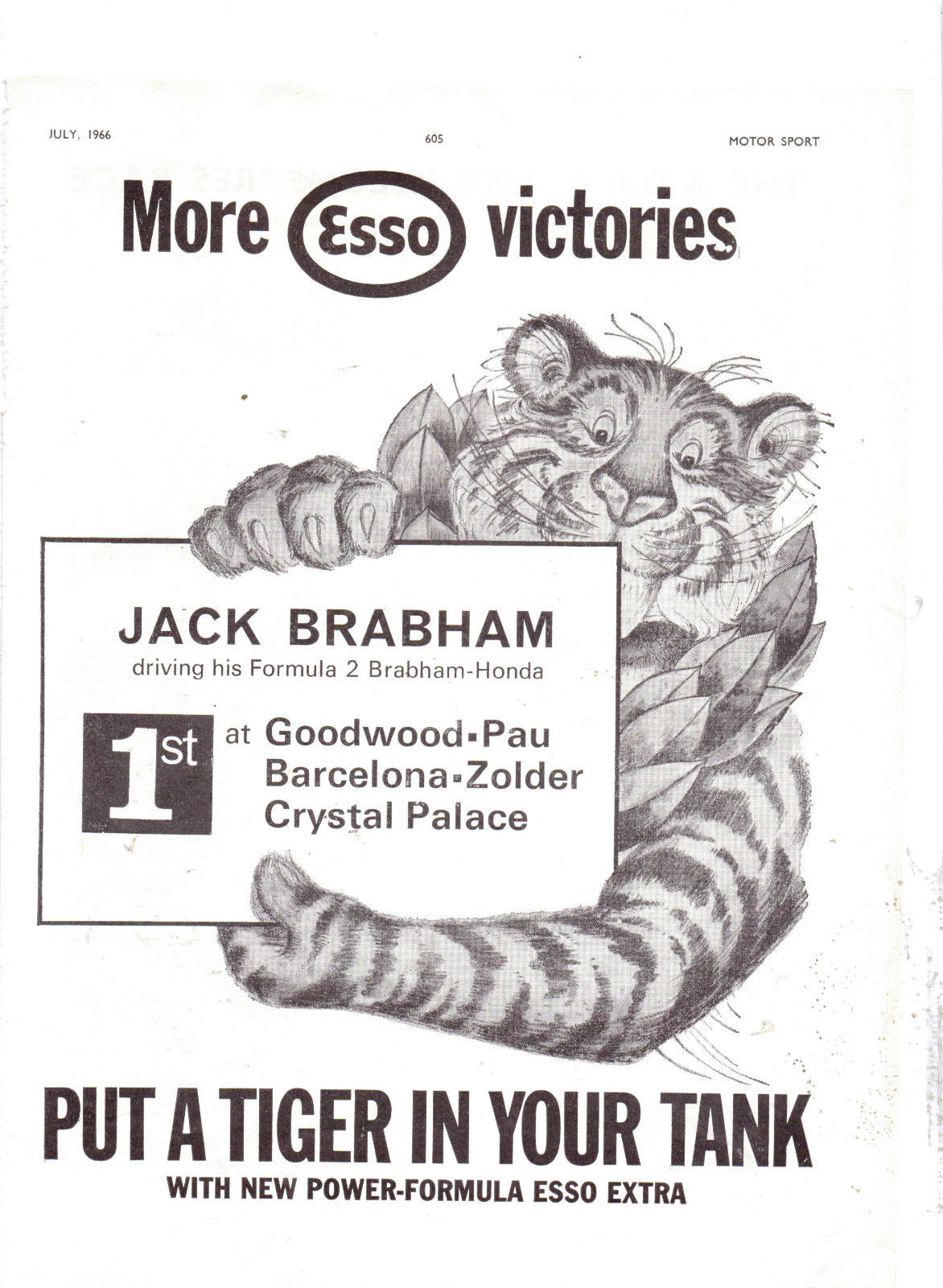 - Команди в ті часи не використовували, по суті, ніякої індивідуальної ідентифікації, за винятком кольору самого боліда. Спонсорство знаходилося в настільки зародковому стані, що, наприклад, Джек Бребем (триразовий чемпіон світу, засновник команди «Бребем», останній титул виграв за кермом власної машини) розміщував на своїх болідах невеликий логотип з тигром в обмін на безкоштовний бензин, який надавала йому нафтова компанія Exxon, так і робилися в ті роки подібні справи.