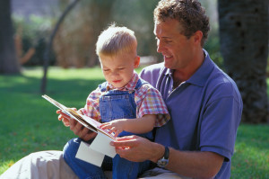 Дитина з татом читають книгу (фото: ЦФА «Бурда»)