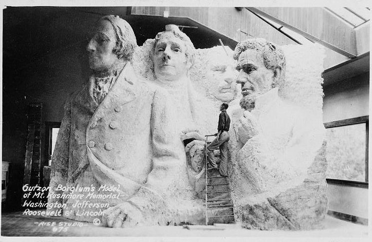 Розташувалися все четверо подалі від народу - на досить високій горі Mount Rushmore. Гігантський барельєф висотою з 6-поверховий будинок містить скульптурні портрети Джорджа Вашингтона, Томаса Джефферсона, Теодора Рузвельта і Авраама Лінкольна. Роботи зі створення фігур велися з 1927 по 1941 рік під керівництвом скульптора Гутзона Борглум.