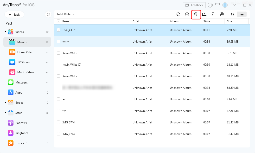 Как удалить видео с iPad с AnyTrans - Шаг 2
