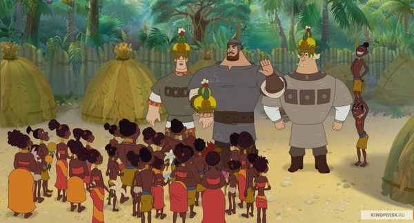 Ну, натурально, три богатирі - хто ж ще? Але не одні - а за допомогою облагодіяних ними негрів. Ось такий от «російсько-африканський союз». Чарівний, правда, розклад сил: зло - «європейці», добро - «негри» ?! Відразу ясно, де наші союзники, де противники. Негри - вдячні і вірні, «європейці» - злі і підступні. «Негри» - в широкому сенсі, як то кажуть - будь-які «чорні».