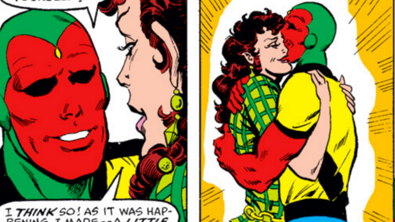 Останній блокбастер Marvel superhero movie характеризується квітучим романом між двома малоймовірними персонажами. Кіномитців, нові в світі Месників, можливо, побачили тремтіння Бачення на Ванді Максімофф і подумали «aw, cute!» Читачі коміксів, знайомі з історією товаришів по команді, ймовірно, відреагували на «о, ні ...» У цих двох були погані часи разом.