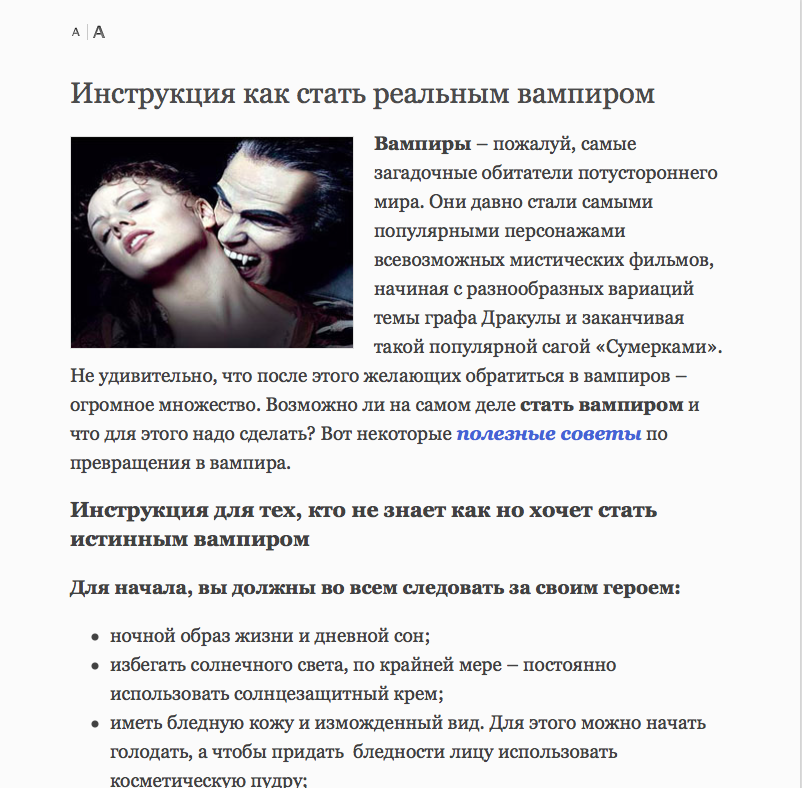 І, звичайно ж, звичайно ж, в десктопном Safari є функція «Reader», яка залишає на сторінці тільки текст і оформляє його в максимально зручне для читання полотно, позбавлене від всякого сміття. Це такий подорожник для вирвіглазних сайтів сумнівного змісту. Якщо нелегка занесла вас -