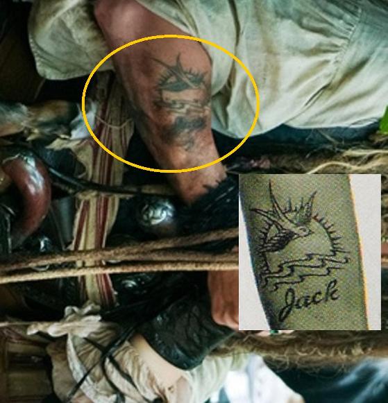 Таким чином, в наступних фільмах татуювання Джека Горобця відрізняється від оригінальної задумки з першої частини фільму, а ім'я під нею всіляко замазують гримом, або брудом.